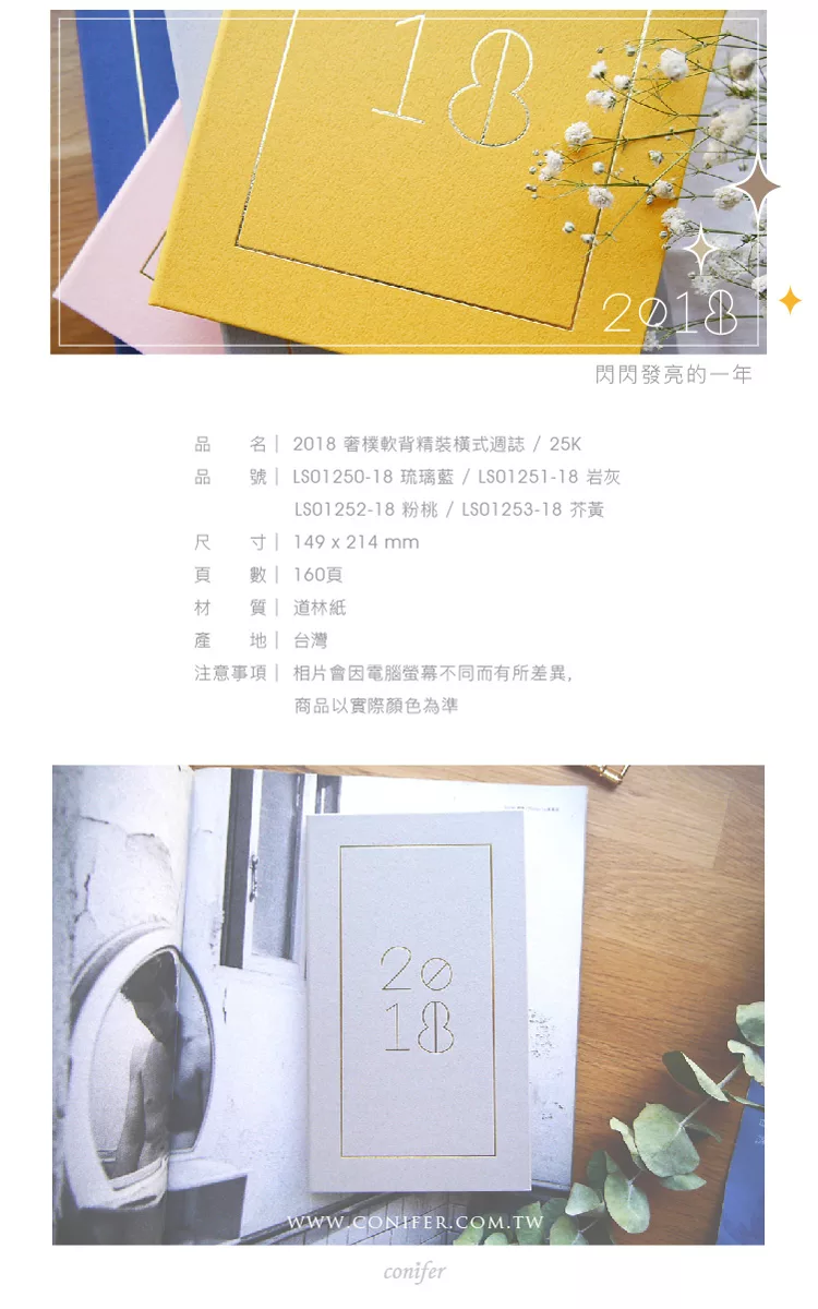 博客來e-coupon 《Conifer》 2018 25K奢樸。軟背精裝橫式週誌。岩灰